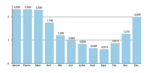Le VCN3 peut cependant chuter à 0,15 m3 ou 150 litres par seconde, en cas de période quinquennale sèche, ce qui est dans la norme des cours d'eau de la région.
