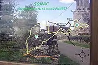 Deux circuits de randonnée, démarrant à la mairie, permettent de parcourir les sentiers et découvrir les curiosités de Sonac :