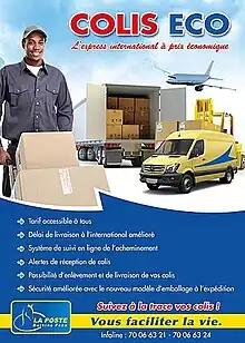 - Post'Éclair: Doté d'une importante logistique et un personnel compétent et disponible, Post'Éclair collecte,traite et livre partout au Burkina Faso les plis, colis et Paquets au bureau ou à domicile. Il couvre l’ensemble du réseau postal au Burkina Faso. Post'Éclair offre un traitement rapide, sécurisé, fiable de votre courrier tout en prenant en compte vos besoins particuliers.