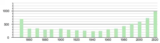 La même année, la commune compte 466 hommes pour 510 femmes, soit un taux de 48,4 % d'hommes, supérieur à celui du canton (47,7 %)[12].