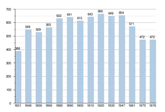 - Source: DGS, 1831 à 1970=recensements population, 1976= habitants au 31 décembre