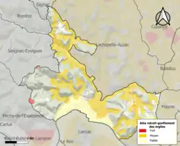 Le retrait-gonflement des sols argileux est susceptible d'engendrer des dommages importants aux bâtiments en cas d’alternance de périodes de sécheresse et de pluie. 40,7 % de la superficie communale est en aléa moyen ou fort (67,7 % au niveau départemental et 48,5 % au niveau national). Sur les 1 434 bâtiments dénombrés sur la commune en 2019, 965 sont en aléa moyen ou fort, soit 67 %, à comparer aux 72 % au niveau départemental et 54 % au niveau national. Une cartographie de l'exposition du territoire national au retrait gonflement des sols argileux est disponible sur le site du BRGM[37],[Carte 2].