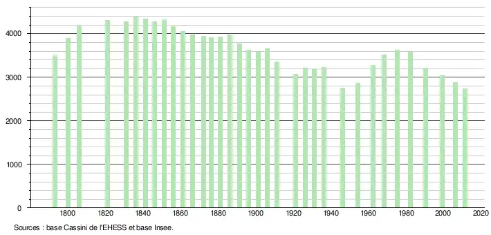 Sourdeval a compté jusqu'à 4 409 habitants en 1836.