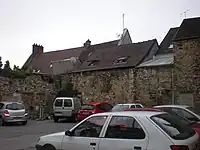 L'aile gauche primitive a disparu. Cette partie date des débuts de l'Empire. L'aile droite, réservée aux bureaux administratifs, repose une cave à quatre travées, avec doubleaux et croisées d'ogives. L'ancien escalier conduisant au cloître était dirigé en sens opposé à la descente actuelle. La cave contenait un puits. Contre le mur sud-ouest des bâtiments actuels s'étendait le cloître. On retrouve dans la cour voisine, sur trois côtés, des vestiges de corbeaux qui indiquent la hauteur de sa toiture. À l'angle de la façade est, tournée vers les jardins, on peut admirer une tourelle, remarquable par la justesse de ses proportions. La façade et la tourelle sont inscrites à l'inventaire des monuments historiques depuis le [1]. Trois lucarnes éclairent les combles (façade est). Les façades à pignons ont gardé leurs chaperons, terminés par un couronnement décoré d'une boule. À l'aile ouest se trouvaient les écuries, la boucherie, le fournil, les pressoirs et les cuves. Les greniers de cette aile servaient à entreposer le blé et autres céréales. Du côté cour et jardin étaient les serres, melonnières et bâtiments annexes. Une maison, située au no 19 de la rue de Paris (ancienne étude de Me Fraissaint, notaire), fait partie des anciennes constructions du couvent des Trinitaires[a 7].