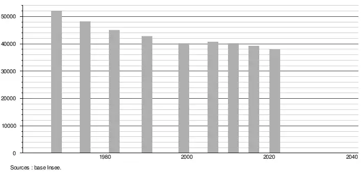 - Population municipale légale en vigueur au 1er janvier 2024, millésimée 2021, définie dans les limites territoriales en vigueur au 1er janvier 2023, date de référence statistique : 1er janvier 2021.