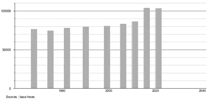 (Sources : Base Insee, population sans doubles comptes à partir de 1962[27] puis population municipale à partir de 2006[28].)
