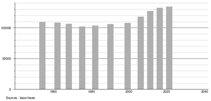 - Population municipale légale en vigueur au 1er janvier 2024, millésimée 2021, définie dans les limites territoriales en vigueur au 1er janvier 2023, date de référence statistique : 1er janvier 2021.