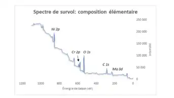 On a finalement accès à la composition chimique de la surface du matériau analysé sur une profondeur de 10 nanomètres environ, par comparaison avec des spectres connus. Des analyses semi-quantitatives peuvent être également extraites des spectres XPS normalisés en se basant sur l'intégrale des pics.