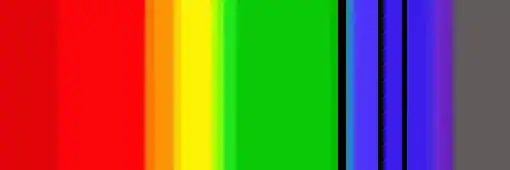 Un spectre par réfraction et dispersion de la lumière est généré par une série de prismes. On observe un "arc-en-ciel". (voir Nombre d'Abbe, constringence)