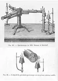 Le spectroscope est un appareil destiné à observer les spectres lumineux. Il fut inventé par Joseph von Fraunhofer, illustre opticien allemand, en 1815.