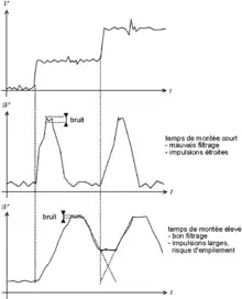 - plus on filtre (δt1 et δt2 élevés), mieux on peut déterminer la hauteur des pics avec précision (bon rapport signal/bruit) ;
