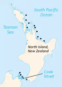 Cette espèce est endémique de Nouvelle-Zélande[1]. Elle se rencontre sur des îles au nord de l'île du Nord et sur des îles du détroit de Cook.