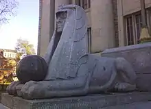 Un sphinx ([sfɛ̃ks], grec ancien : σφίγξ, béotien : φίξ [pʰíːks] ; au féminin sphinge ou sphynge[1]) est une créature légendaire ayant la tête d'un humain, d'un faucon, d'un chat ou d'un bélier et le corps d'un lion avec, dans certaines versions du mythe, les ailes d'un aigle.