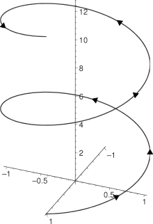 On trouve aussi le terme de spirale pour des courbes en dimension trois qui tournent autour d'un axe en s'en éloignant ou s'en rapprochant comme les spirales coniques (en) ou en restant à distance fixe comme l'hélice circulaire.