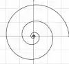| Spirale hyperbolique: elle possède une droite asymptote et certaines droites du plan ne la rencontrent pas | Une spirale algébrique dont l'équation polaire est pour θ positif. Elle démarre à l'origine et possède le cercle unité comme asymptote. | Spirale de Théodore formée de segments de droites qui n'est pas une courbe de classe C1 |