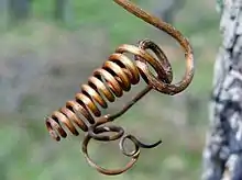 D'autres spirales sont issues de l'adaptation du vivant à l'environnement. Les animaux à queue comme le caméléon ou l'hippocampe enroulent leur appendice et on retrouve alors la spirale[18] comme on peut l'observer dans une corde enroulée posée au sol[19]. C'est la même forme que l'on peut observer chez des myriapodes. Les plantes grimpantes dessinent des spirales quand elles s'enroulent autour d'un tuteur ou lancent des vrilles pour s'y agripper[20]. Le spirographe déploie ses filaments en spirales pour se nourrir et respirer[21]. Pour construire sa toile, l'araignée procède à la construction successive de deux spirales[22].