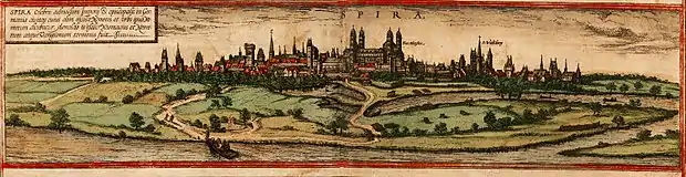 En 1689, lors des guerres de Succession du Palatinat, la cathédrale et la ville sont presque totalement incendiées par Ezéchiel de Mélac et les troupes françaises de Louis XIV, les tombeaux des empereurs étant alors profanés. Dix ans après, les habitants sont autorisés à se réinstaller dans la ville détruite. Tous les bâtiments historiques sont construits lors de cette période, à partir de 1700, comme la mairie, l’église de la Trinité, la maison des marchands sur la place de l’ancien marché et de nombreuses maisons bourgeoises.