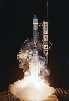 Spitzer est placé en orbite le par un lanceur Delta II 7920H depuis la base de lancement de Cap Canaveral en Floride. Baptisé SIRTF pour Space Infrared Telescope Facility avant son lancement, il est renommé Spitzer quatre mois plus tard en l'honneur du scientifique américain, Lyman Spitzer, astrophysicien américain qui a joué un rôle moteur dans les premiers projets de télescope spatial. Spitzer est lancé « chaud » ce qui permet de réduire sa masse. Durant les trois mois qui suivent, les instruments immergés dans l'hélium liquide se refroidissent progressivement tandis que la température de la partie optique est abaissée par les vapeurs de l'hélium qui s'évapore. Le télescope entame alors la phase cryogénique de sa mission.