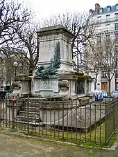Le square abrite le socle d'un monument à la mémoire de l'homme politique français François-Vincent Raspail, réalisé en 1889 par le sculpteur Léopold Morice. De base carrée, le socle est un édifice en pierre portant les mentions « F. V. Raspail, 1794-1878 », ainsi que « souscription nationale ». La statue en bronze a été fondue sous l'Occupation. Il possède cependant toujours deux bas-reliefs en bronze, également créés par Léopold Morice et fondus par Thiébaut, qui sont intitulés : Raspail proclame la République à l'Hôtel de Ville et Raspail visitant un malade dans une mansarde. Le socle est entouré par une petite grille qui en protège l'accès.