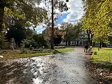 Il possède une zone de jeux pour les enfants et un petit plan d'eau où voguent des cygnes blancs.