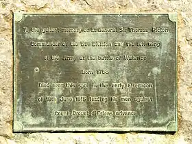 À l'est de la ferme, le général britannique Thomas Picton (déjà blessé la veille à la bataille des Quatre-Bras) mène, avec la 5e division, composée de régiments d'infanterie écossais, appuyée par la cavalerie lourde britannique, une contre-attaque qui met en déroute les divisions françaises du général Drouet d'Erlon mais il est tué d'une balle en pleine tête à proximité de l'emplacement de la stèle.