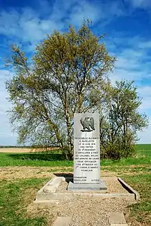 La stèle marque de façon très approximative[1] l'endroit où les unités du 6e régiment d'artillerie à pied du colonel Hulot appuyèrent les attaques du 1er corps d'armée français le .