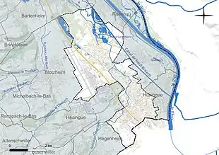 Les communes limitrophes sont Bartenheim, Rosenau, Village-Neuf, Huningue, Hégenheim, Hésingue, Blotzheim, Bâle et Allschwil.