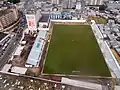 Le stade est situé dans le quartier Akwa. En face de la cathédrale de Douala, dans le centre des affaires de la ville. Il jouxte le cimetière d'Akwa.