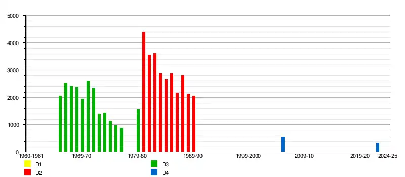 Affluences moyennes au stade Paul-Delique depuis 1960[5]