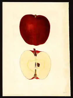 Cette variété provient des États-Unis. Obtenue par mutation, aux États-Unis, de la variété Delicious, elle s'en distingue par son coloris rouge carmin foncé sur toute la surface, même chez les fruits ombragés.