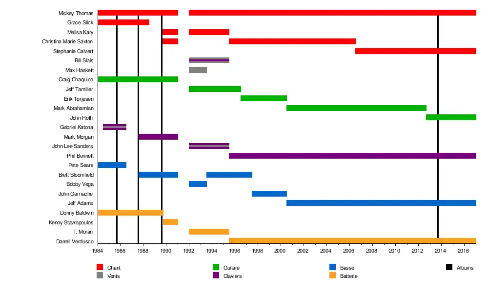 - Mickey Thomas : chant (1984-1990, depuis 1992)