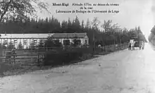 La première station de l'université de Liège sur le plateau des Hautes Fagnes est fondée en 1924 à l'initiative du professeur Léon Fredericq[1] ; cette station est détruite durant la seconde Guerre mondiale par les Allemands, à partir du , puis durant l'hiver 1944-1945 par les Américains pendant l'offensive des Ardennes[2]. Un nouveau bâtiment, toujours en bois, est reconstruit en 1947, par l'équipe du professeur Raymond Bouillenne, avec des matériaux provenant de pavillons abandonnés en fagne par l'armée américaine[2],[3]. En 1963, l'université de Liège décide de construire un nouveau bâtiment en dur ; le chantier entamé en 1972 s'achève en 1975 et l'ancien bâtiment en bois est détruit[4].