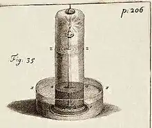 L’appareil de la figure 35 a été conçu pour mesurer la quantité d’air absorbé ou produit par une chandelle, par une réaction chimique, par la combustion de soufre ou de nitre, par la respiration d’un petit animal ou par la fermentation de diverses substances.