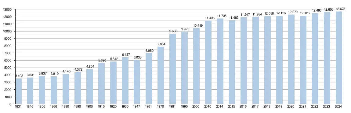 Elle comptait, au début 2024, 12 680 habitants (6 222 hommes et 6 458 femmes), soit une densité de 536,61 habitants/km²[7] pour une superficie de 23,63 km².