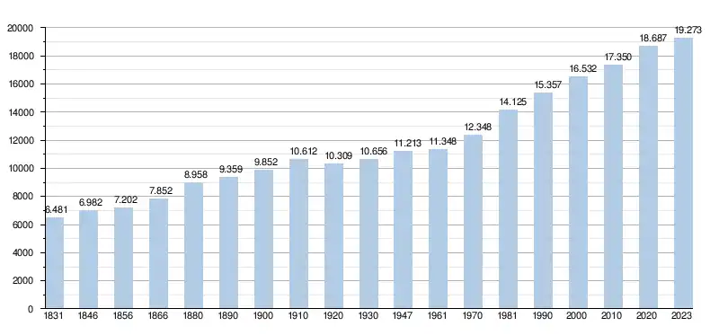 - Source : DGS - Remarque: 1831 jusqu'à 1981=recensement; depuis 1990=nombre d'habitants chaque 1er janvier[5]