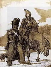 Fiévreux, pris d’une rage de dent, il a une révélation (en italien) : ce qu'il désire faire naître un jour, c’est un « mélange d’allégresse et de tendresse », comme Cimarosa[57]. Le , alors que Napoléon attend toujours des nouvelles du tsar, il est chargé de la direction des approvisionnements de réserve et des réquisitions. Il retourne à Smolensk le , avec 1 500 blessés, puis repart immédiatement pour Vilna. Durant le trajet, il se fait attaquer par des cosaques, et perd le manuscrit de L’Histoire de la Peinture en Italie. Le froid terrible (températures de −40 °C), la faim, la fatigue ont réduit la Grande Armée en miettes[N 11]. Henri a la bonne idée de passer la Bérézina le , la veille de la bataille (pourtant victorieuse) et du désastre qui s’ensuivit : les ponts brûlés, les blessés abandonnés. Le , il part pour Dantzig puis rejoint Berlin. Il est à Paris le .