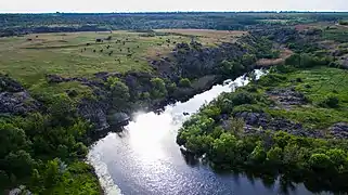 La rivière et ses affluents creusent le massif rocheux en formant de nombreux rapides. Le paysage alterne le tchernoziom et les roches nues.