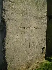 Les figures gravées d'un poignard et de têtes de haches ont été relevées sur l'un des piliers (pierre 53) du trilithe sud. D'autres gravures de têtes de haches ont été repérées sur les faces extérieures des pierres situées au nord-est du grand cercle de sarsen (pierres 3, 4 et 5). Ces figures sont difficiles à dater, mais sont d'aspect très semblable aux types d'armes bien connus du Bronze tardif[8].