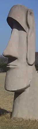 Après avoir fini le cercle, les auteurs ont reproduit deux statues de l'île de Pâques sur le même terrain.