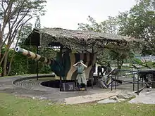Le , les Japonais occupèrent la concession internationale de Shanghai et quelques heures plus tard, ils débarquèrent à Kota Bharu en Malaisie. Une heure après, la marine impériale japonaise attaqua Pearl Harbor[90]. Le , le HMS Prince of Wales et le HMS Repulse, envoyés au nord en tant que Force Z pour empêcher ces débarquements, furent attaqués et coulés par les appareils japonais[91]. Lors de la bataille de Malaisie, les forces alliées furent balayées et le siège de Singapour commença à la fin du mois de janvier. Certains canons de 381 mm et de 234 mm tirèrent sur les forces japonaises à Johor Bahru, Tengah et Bukit Timah mais comme ils ne disposaient que d'obus anti-blindage, les dégâts furent limités. Malgré la large supériorité numérique alliée, Singapour capitula le [92],[93].