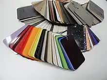 Les stratifiés minces (de 0,6 mm à 2,3 mm) sont des matériaux de revêtement qui s'utilisent en placage. Ils ne doivent pas être confondus avec les panneaux mélaminés, qui sont également recouverts, à chaud et sous pression, d'une feuille unique de papier décor imprégnée de mélamine.