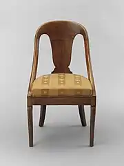 Chaise gondole en bois d'acajou, à dossier ajouré. - La chaise gondole[1] à dossier « en hotte » ou à dossier « en crosse » (dossier dont la partie supérieure s’enroule sur elle-même, en crosse, vers l’extérieur).