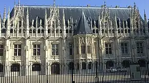 Façade gothique du palais de justice de Rouen, construit entre 1499 et 1508, style qui inspira le néogothique au XIXe siècle.