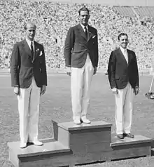 Le podium du Pentathlon moderne avec Oxenstierna sur la plus haute marche et Lindman en argent.