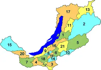 | 21 | Raïon de Khorinsk | Хоринский район | Хориин аймаг | 81 257 | 13.43 | 16 573 | 1.23 | Khorinsk |
