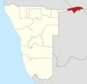 | 8 | Zambezi | Katima Mulilo | 90,596 | 14,785 | 6.1 | Appelée « Caprivi » jusqu'au |