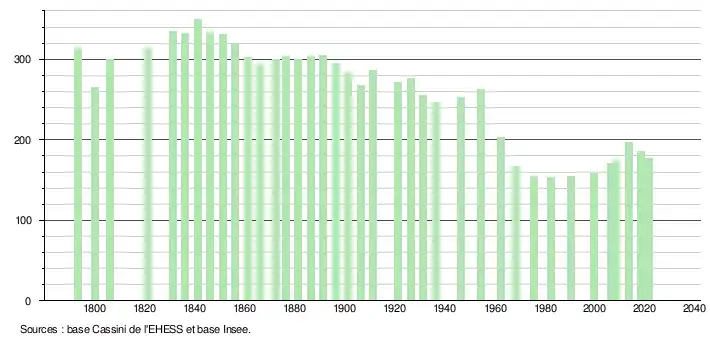 - Fiches Insee - Populations légales de la commune pour les années 2006, 2007, 2008, 2009, 2010, 2011, 2012, 2013, 2014, 2015, 2016, 2017, 2018, 2019, 2020 et 2021.