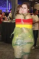 - La momification consiste à être immobilisé par enveloppement de la totalité du corps, à l'exception de la tête (à cause du risque d'étouffement), dans un matériau souple comme un film plastique ménager interdisant tout mouvement