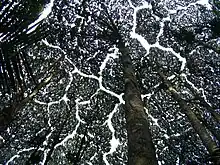 Il a été démontré que l'allélopathie joue un rôle crucial dans les forêts, en influençant la composition de la croissance de la végétation, et fournit également une explication pour les modèles de régénération des forêts. Le noyer noir (Juglans nigra) produit le juglon allélochimique, qui affecte fortement certaines espèces et pas du tout d'autres. La litière de feuilles et les exsudats de racines de certaines espèces d'Eucalyptus[27] sont allélopathiques pour certains microbes du sol et certaines espèces végétales. L'ailante glanduleux Ailanthus altissima, produit dans ses racines des substances allélochimiques qui inhibent la croissance de nombreuses plantes. Le rythme d'évaluation des allélochimiques libérés par les plantes supérieures dans la nature s'est considérablement accéléré, avec des résultats prometteurs dans le criblage sur le terrain[28].