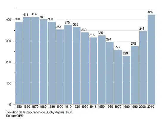 Le graphique suivant résume l'évolution de la population de Suchy entre 1850 et 2010[9] :